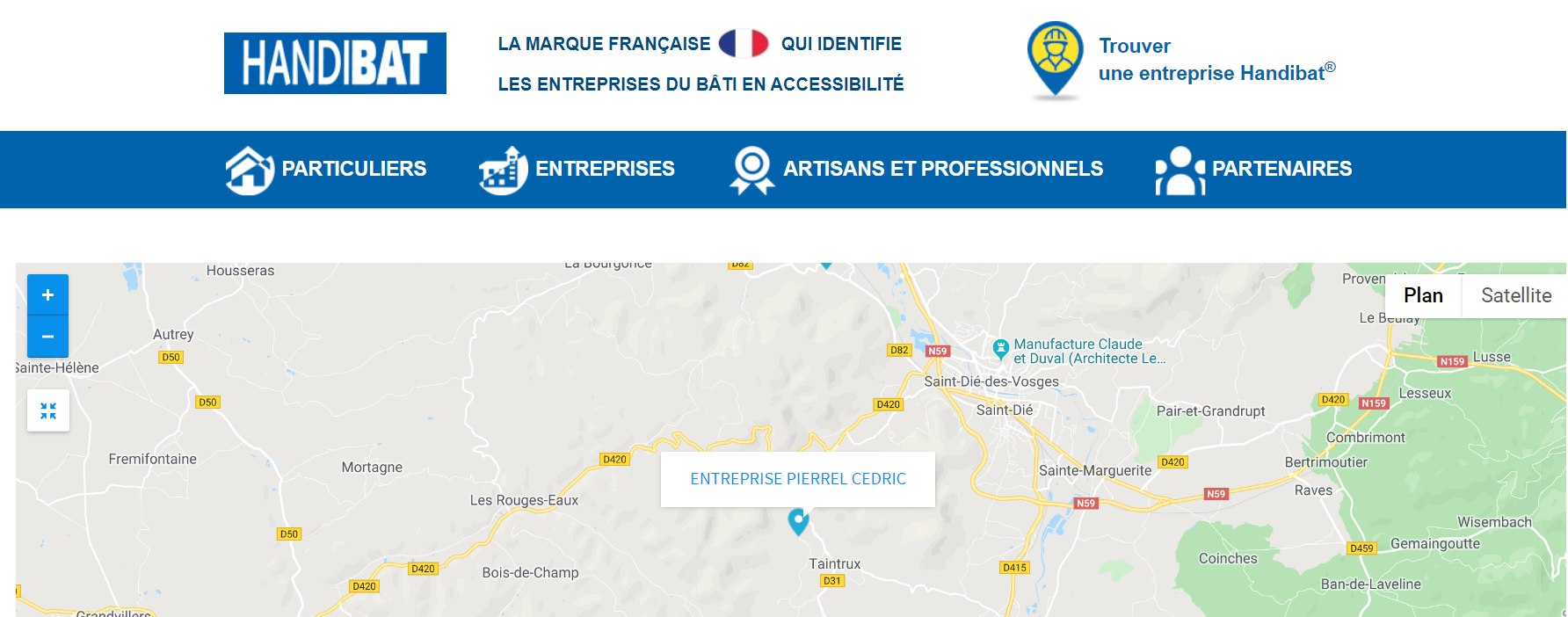 HANDIBAT LA MARQUE FRANÇAISE  QUI IDENTIFIE LES ENTREPRISES DU BÂTI EN ACCESSIBILITÉ.  Handibat® : le spécialiste de l’accessibilité des bâtiments aux PMR Créée au début des années 2000 dans l’Eure, Handibat est une marque CAPEB (Confédération de l'A